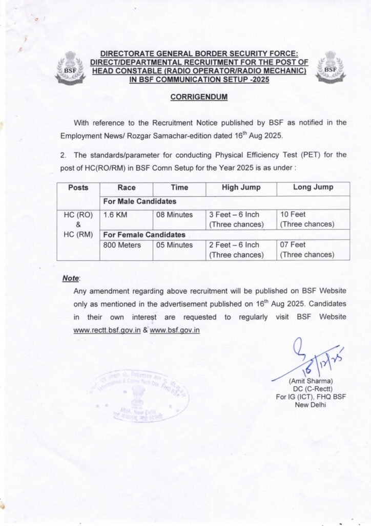 BSF RO RM PET PST Admit Card 2025 OUT; Border Security Force (BSF) has Officially Released PET & PST Admit Card for the Post of Head Constable Radio Operator & Head Constable Radio Mechanic Recruitment 2025 for 1121 Post. PET & PST Start On December, 2025 & PET & PST Admit Card Released On December 17, 2025. All Interested Candidates Can Download PET & PST Admit Card Now in the Given Link Below